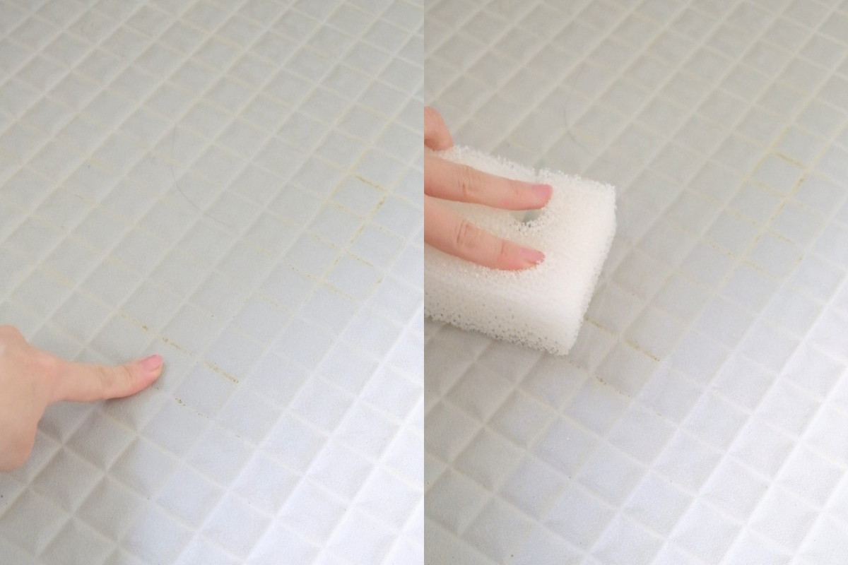 お風呂の床って… 凸凹してて、ほんと掃除がしにくくないですか?(>_買ってみたモノ そこで買ったモノ! 「速乾床用ハンディブラシ(落ち落ちV)···