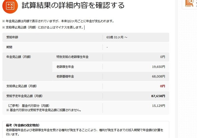 53歳女性・正社員介護職(就職して3年半)の年金見込み額でございます。
